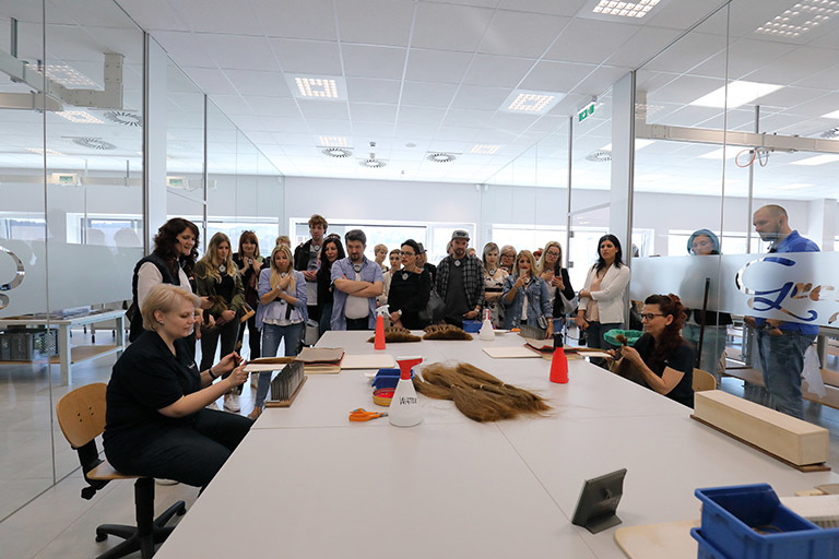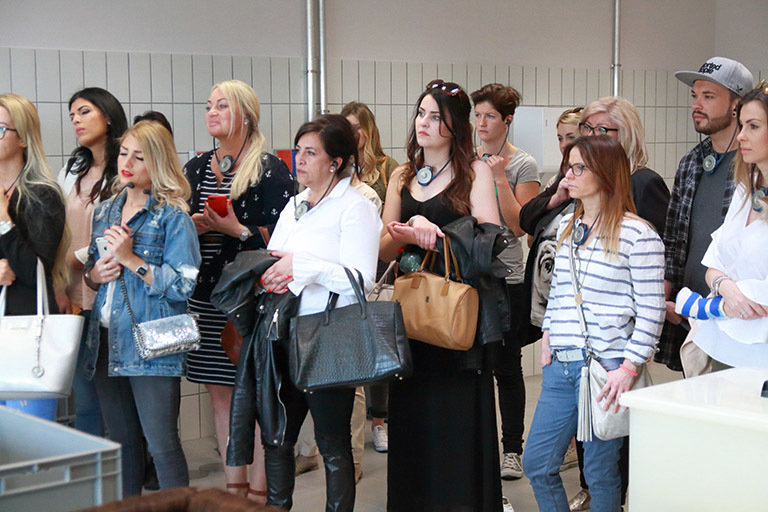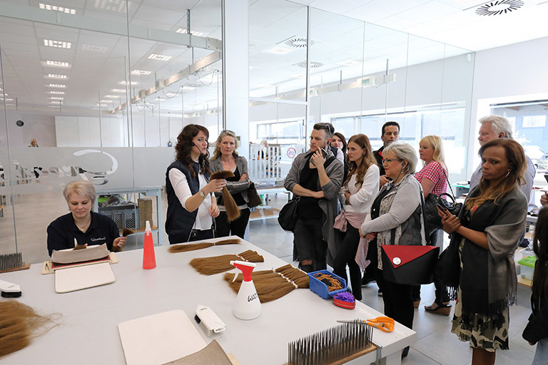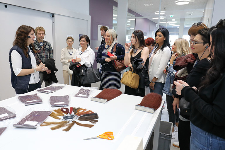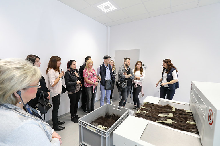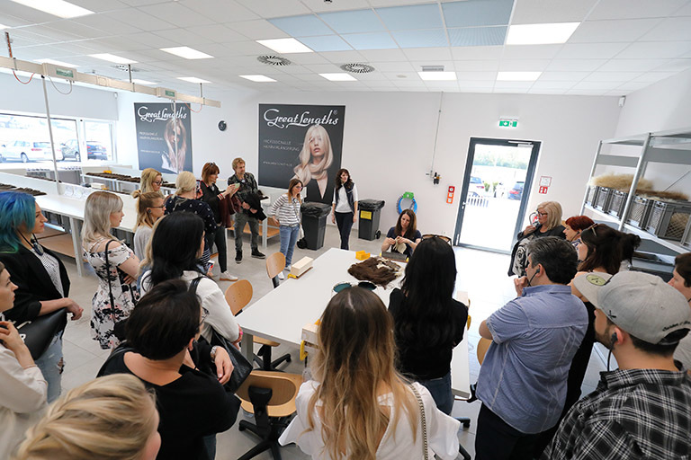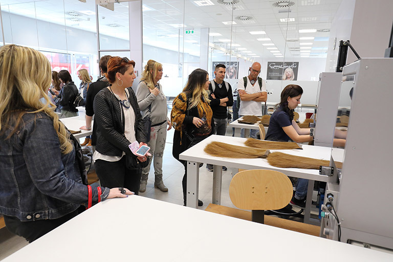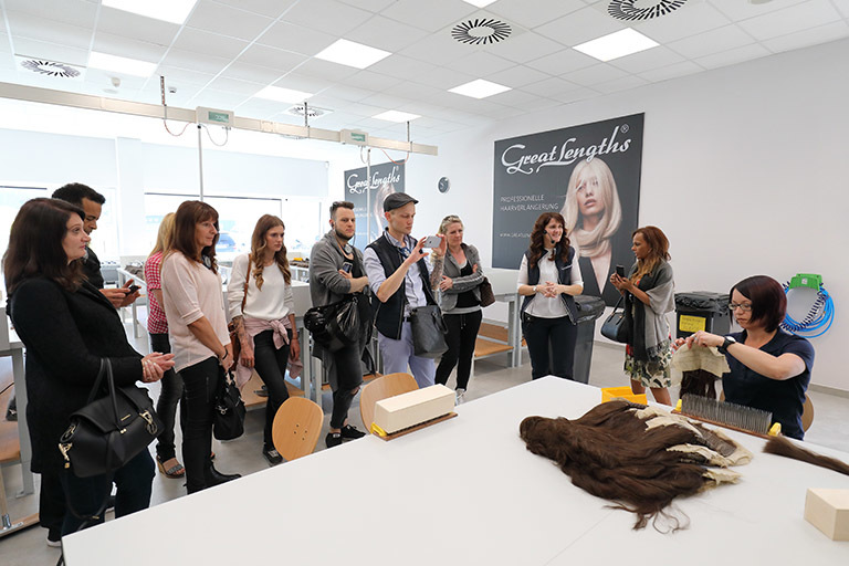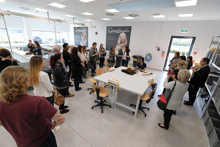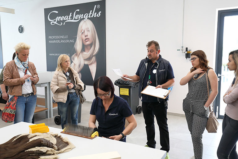 Montag ging es zum Abschluss des Weekends von Graz nach St. Stefan, um dort die neue Produktionsstätte von Great Lengths zu besichtigen. Jede Stunde kam ein neuer Bus mit Partnern an. Anita Lafer hatte den ganzen Vormittag nichts anderes zu tun, als die wissbegierigen Gäste durch die Produktion zu führen. Aber es machte ihr natürlich einen Riesenspaß: „Kann es etwas Schöneres geben, als begeisterten Partner zu zeigen, wie die Qualität entsteht, mit der wir alle gemeinsam so erfolgreich sind!“