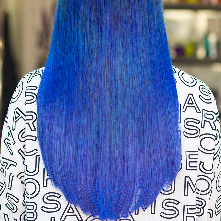 // Jahrelang trug ich eine blonde Mähne und wollte nun eine trendige Veränderung. Bei einem Job in Miami dachte ich spontan: Blau soll es sein! Kurzerhand färbte ich einfach selbst. So sah es dann aber leider auch aus. Daher freue ich mich umso mehr,