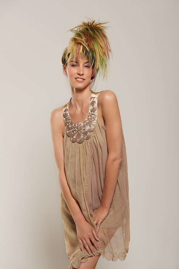 Das französische Wort „balayer“ bedeutet soviel wie „fegen“ oder „frei aufpinseln“. Und das ist bekanntlich die Technik, mit der Balayage-Looks erzeugt werden. Mario dringt dabei in eine völlig neue Farbwelt vor: Gelb, Pink und ein Hauch von Grün prägen das Bild. Eigentlich Farben, die gewöhnlich als bunt erlebt werden. Beim Look 3 wirken sie dennoch elegant, weil der dunklere Bereich am Oberkopf immer den nötigen Halt gibt.