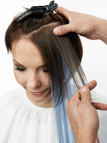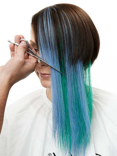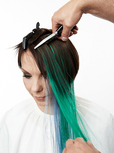 Die moderne Haarverlängerung von Great Lengths kann mehr. Und das viel schneller als man glaubt. GL Apps sind Echthaarsträhnen in höchster Qualität. Sie werden ohne jedes System ins Haar appliziert. Und geben Dir die Freiheit, von einer Minute auf die andere in einen neuen Look zu schlüpfen. In diesem Fall waren dafür nur 3 GL Apps in der Farbe Crazygreen und 5 in der Farbe Pastel Blue nötig. Mehr braucht es heute nicht, um kurze Zeit später mit einem spannenden Effekt zu überraschen.