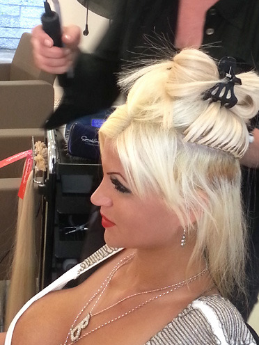 „Ich weiß, dass die Leute denken, ich sei oberflächlich. Aber ich möchte besonders jetzt schön sein für meinen Mann.“ Unverzichtbar für ihren markanten Look ist die lange, hellblonde Mähne, die mithilfe von Extensions kreiert wird. „Wichtig sind dabei hochwertige Echthaarverlängerungen, um eine gepflegte und glänzende Frisur zu erhalten“, weiß Ronnie Meisen. So entfernte die erfahrene Great-Lengths-Trainerin kürzlich glanzlose und verfilzte Extensions von einem kostengünstigen Anbieter aus Sophias Eigenhaar und arbeitete ihr mithilfe schonender Ultraschalltechnik hochwertige Strähnen vom führenden Anbieter für Echthaarverlängerungen und -verdichtungen ein. „Meine Haare sehen nun endlich gepflegt und seidig aus“, strahlt Sophia Wollersheim.